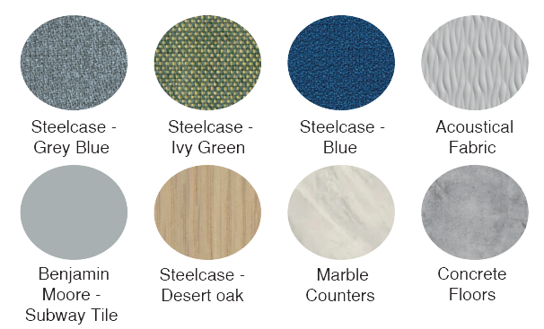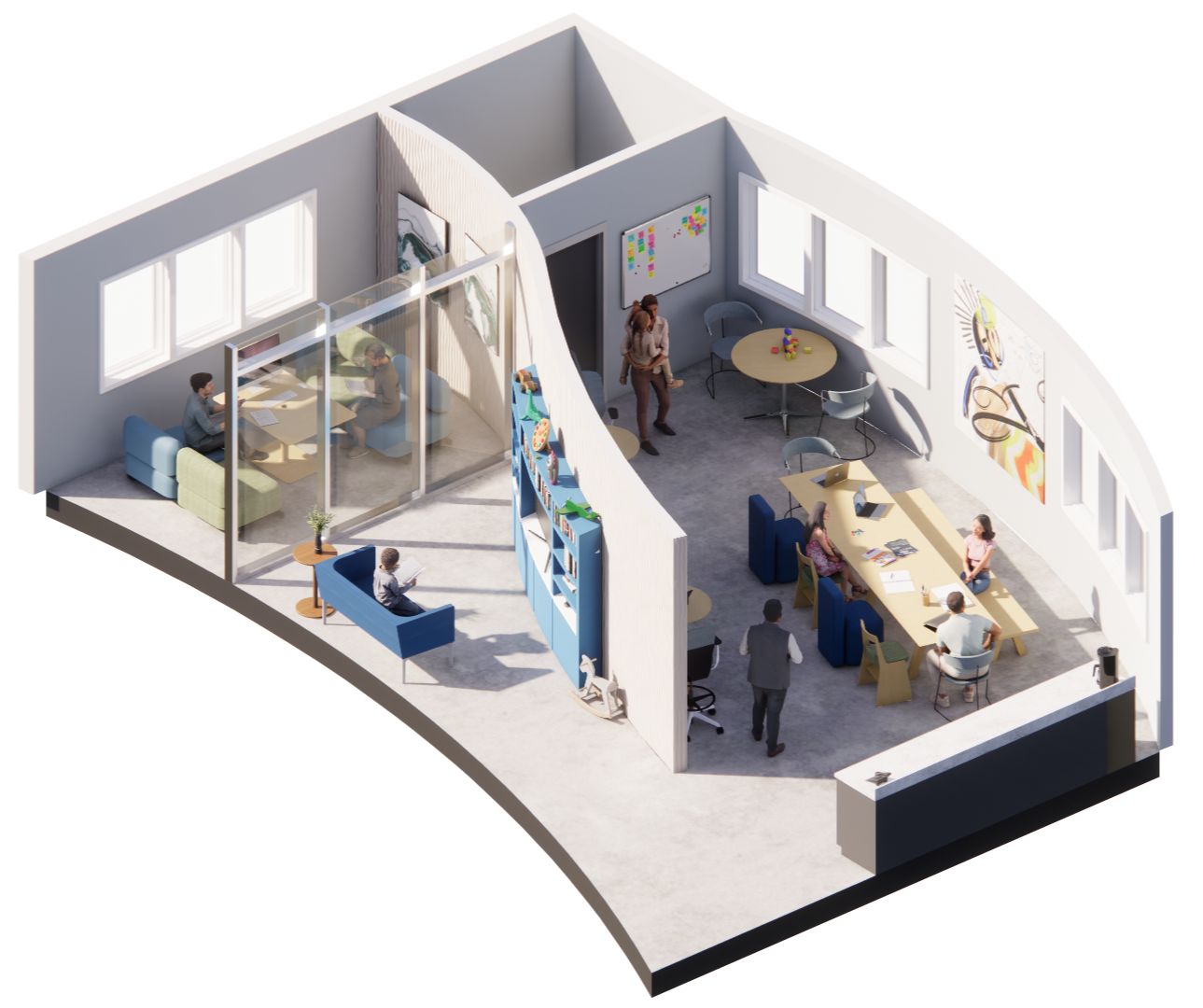 The color blue is featured throughout the plan, it has been found to relax and calm minds. Blue also promotes high levels of thought, which is great for our engaging learning environment
