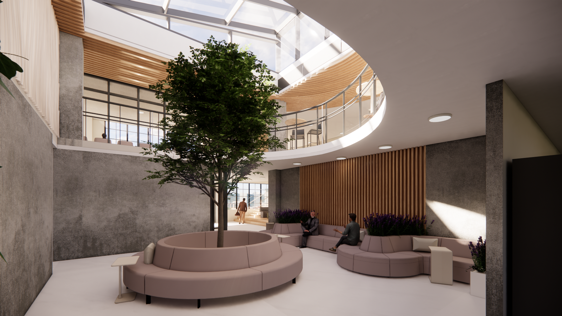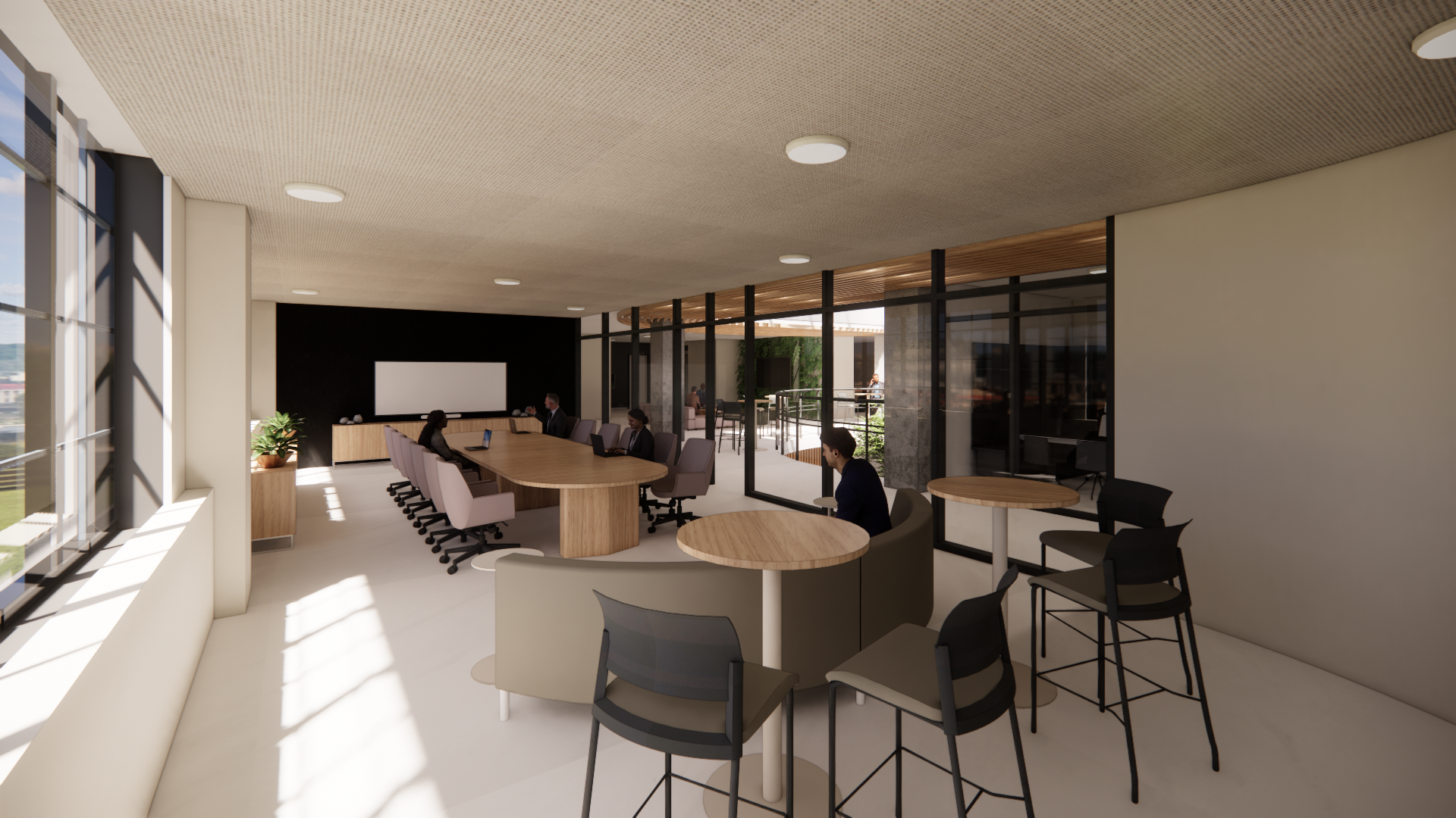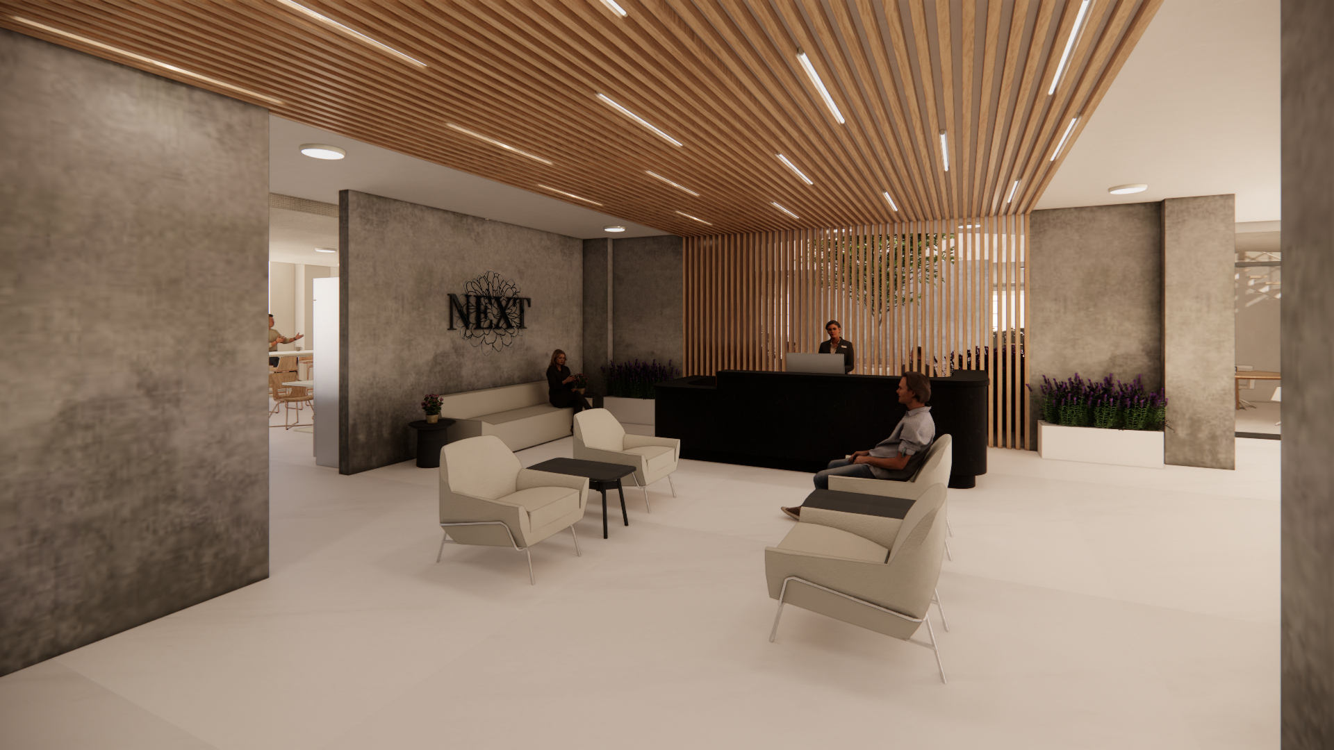 Design Concept: NEXT is an advertising agency focused on sustainability, collaboration, and rejuvenation. The design emphasizes the use of natural light, greenery, and organic materials and textures, creating a harmonious environment that promotes well-being and productivity. Chrysanthemums, know for their beauty and calming effect, are thoughtfully integrated into the workspace, enhancing the sense of tranquility and connection with nature. A blend of open and enclosed spaces fosters communication and collaboration, while also providing areas for relaxation. The design encourages a serene and natural atmosphere, stimulating creativity within a sustainable framework.